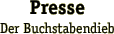 "Eine Stunde voller Fantasie, Spannung, Witz und Faszination" ( Rheinpfalz ) "Eindrucksvoll, was eine einzelne Frau auf der Bühneso alles darstellen kann" ( Rheinpfalz ) "Der Buchstabendieb verfügt über alles was ein Kinderherz von einer guten Geschichte erwartet" ( Rheinpfalz ) | ||